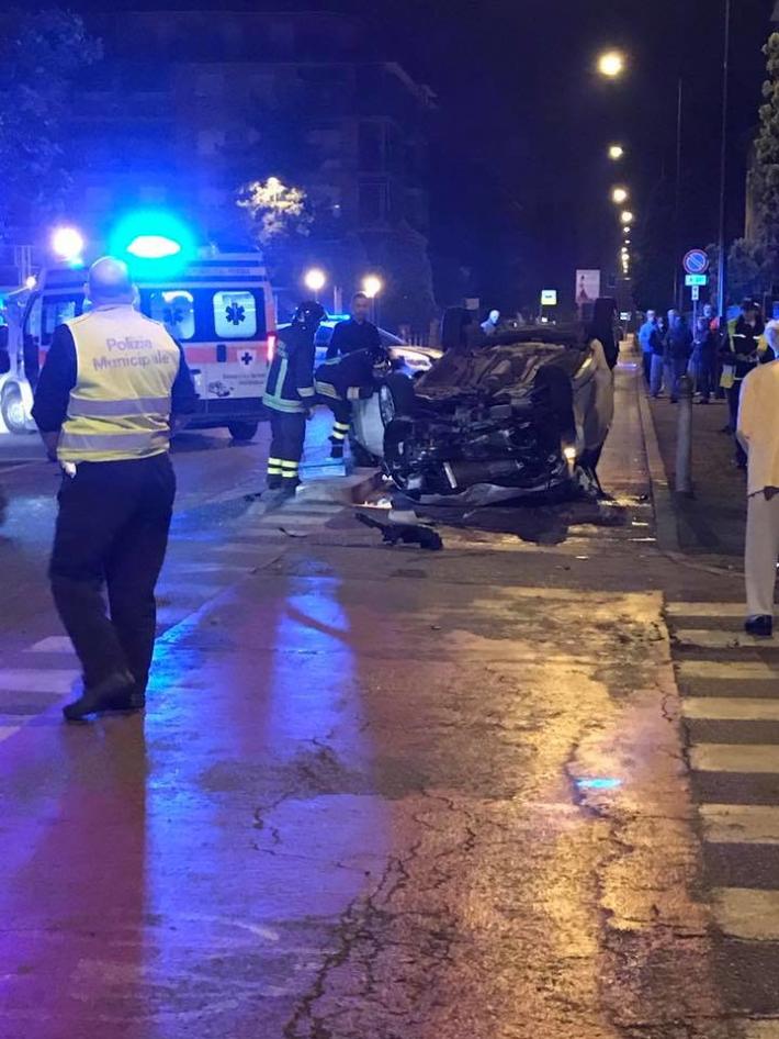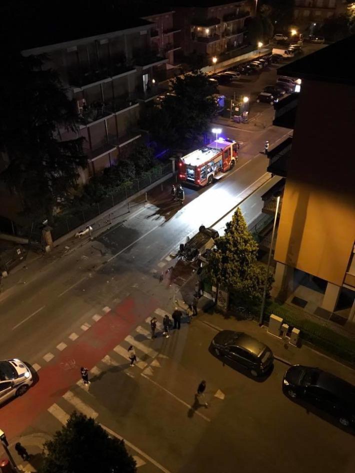 Uno schianto pauroso e dal suono altrettanto sinistro, che ha richiamato alle finestre e poi in strada diversi residenti. E' accaduto poco dopo la mezzanotte in via Montebello, quando due auto - per motivi ancora in via d'accertamento da parte della Polizia Municipale - si sono scontrate e una si è ribaltata su se stessa, finendo sulla pista ciclabile. "E per fortuna nessuno stava passando di lì", racconta uno dei testimoni. L'altra invece, ha sfondato una cancellata, prima di essere sbalzata di nuovo in strada.