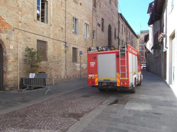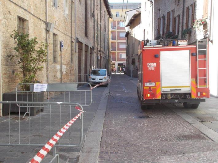 Transenne e nastro bianco e rosso hanno "impacchettato" vicolo Santa Maria, dove ha sede la Biblioteca Civica. Questa mattina i vigili del fuoco sono intervenuti per un pericolo di caduta calcinacci e coppi e hanno provveduto a verificare la situazione a recintare l'area. Ecco le foto di uno dei testimoni dell'intervento, Enzo.
