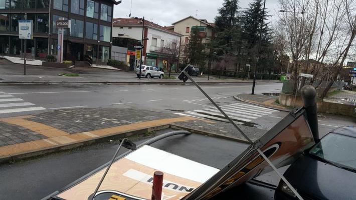 La pioggia e il vento molto forte della notte scorsa hanno lasciato segni anche a Parma e provincia. Su Facebook Andrzej Krzton pubblica alcune foto di un cartello caduto in via Emilio Lepido. Anche la lettrice Letizia Monica invia una foto del cartellone caduto all'angolo fra via Cicerone e via Emilio Lepido.