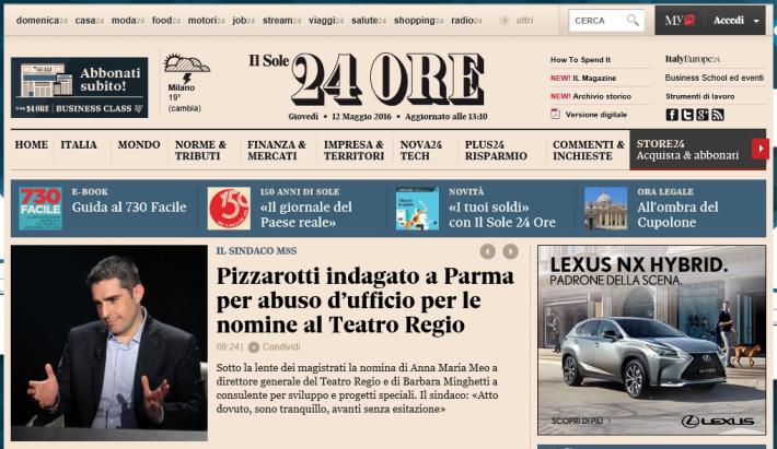 Questo il titolo dell'esclusiva pubblicata questa mattina dalla Gazzetta di Parma. E com'era prevedibile, la notizia sta subito facendo il giro del web nazionale, schizzando spesso al primo posto come mostra la prima fotogallery.