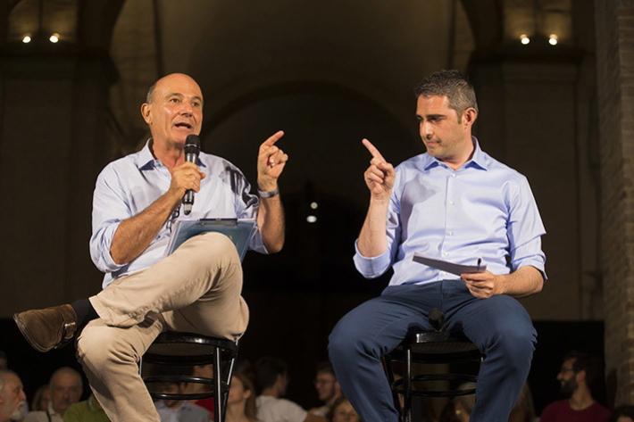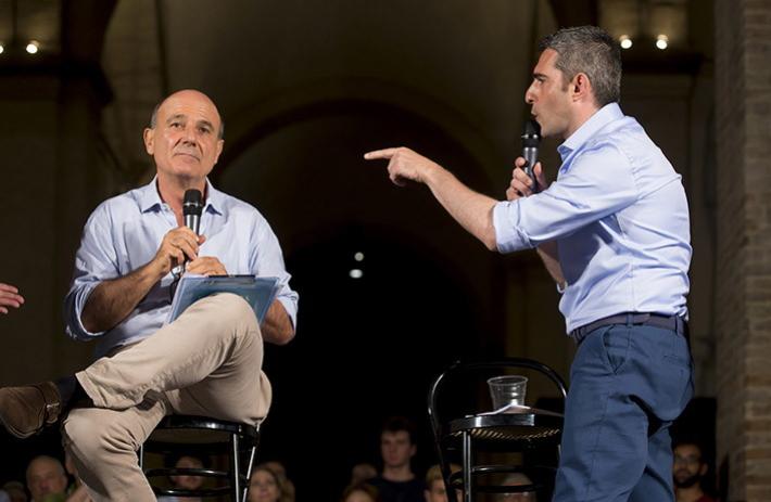 Due visioni diverse della città quelle dei due candidati. Le prime scintille sul tema della sicurezza, con Scarpa che ribadisce la priorità della lotta allo spaccio e alla criminalità e Pizzarotti che rivendica i risultati dell'amministrazione e l'aumento di agenti ottenuto da Minniti. Ma posizioni opposte anche sulla gestione dei rifiuti, sulla mobilità (con punzecchiature sulla Tep), sul welfare, infrastrutture, crisi economica e pure sulla cultura con Pizzarotti che ha difeso l'operato della sua giunta e Scarpa che ha lamentato il declino della città. Alla fine l'esposizione di un progetto nuovo: Scarpa ha illustrato "Zero Cento" il suo progetto per prendersi cura dei cittadini, dall'infanzia alla vecchiaia, mentre Pizzarotti ha illustrato il progetto di "reddito garantito comunale" che si propone di riuscire ad evitare che le famiglie si trovino in situazione critiche (come perdere la casa per morosità). Tutto si è concluso con gli appelli al voto dei candidati.