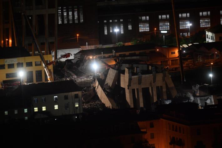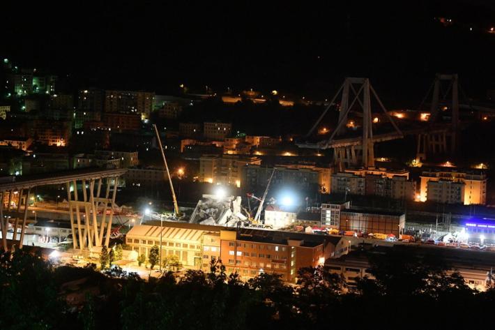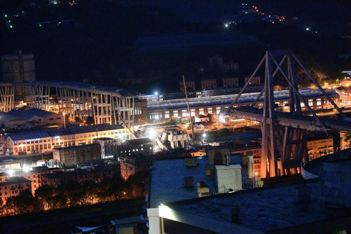 NOTTE DI LAVORO PER I SOCCORRITORI. Sono proseguite per la seconda notte consecutiva le ricerche di eventuali ulteriori vittime tra le macerie del ponte Morandi crollato due giorni fa a Genova. Le squadre Usar e cinofile dei vigili del fuoco hanno lavorato ininterrottamente, ma non sono stati né individuati né recuperati altri corpi.