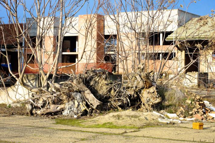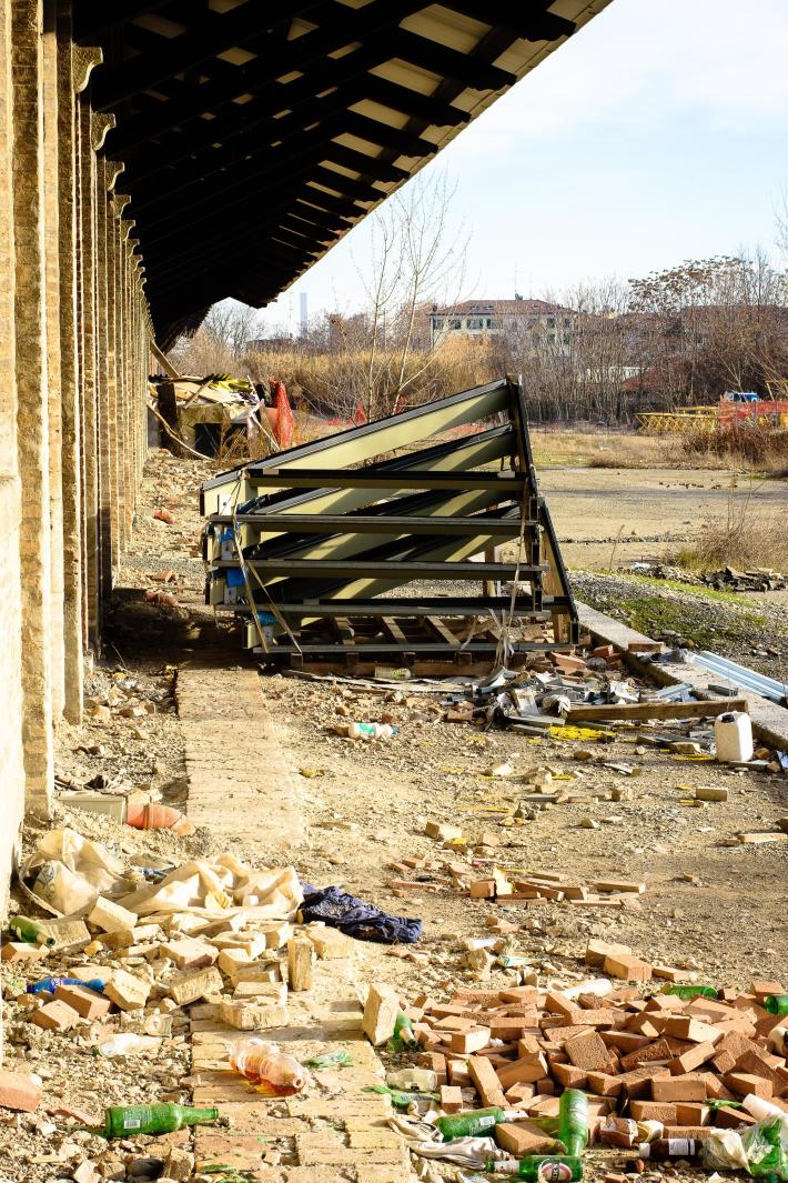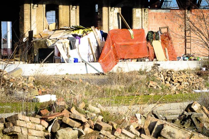 "Un grande magazzino è stato costruito in parte e poi, chissà perché, lasciato andare in malora, così è stato occupato da persone senza casa, che ci vivono: ci sono baracche improvvisate, costruite con materiali di scarto di ogni genere, c'è persino chi alleva i suoi polli. Siamo a poca distanza dai palazzi comunali del DUC e del DUS". scrive l'autore degli scatti.