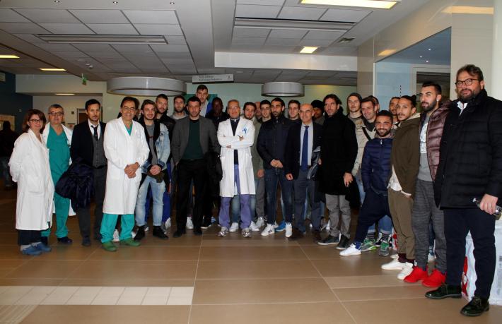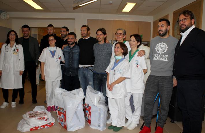 Sono arrivati con le mani cariche di doni, i giocatori del Parma Calcio, pronti a consegnarli - rigorosamente da parte di Santa Lucia - ai bambini ricoverati nei reparti pediatrici del Maggiore. Dall’astanteria pediatrica, passando per il Day hospital, della dottoressa Maria Teresa Tondelli all’Oncoematologia fino alla Pediatria generale e d’urgenza, la prima squadra ha percorso i corridoi dell’Ospedale dei Bambini “Pietro Barilla”. A guidare i giocatori c'era il direttore sportivo Daniele Faggiano, accompagnato dal mister Roberto D’Aversa e dal capitano Alessandro Lucarelli, con il prezioso carico di giocattoli e di gadget della società. Ma il regalo più gradito è stata la foto ricordo con la squadra del cuore. “