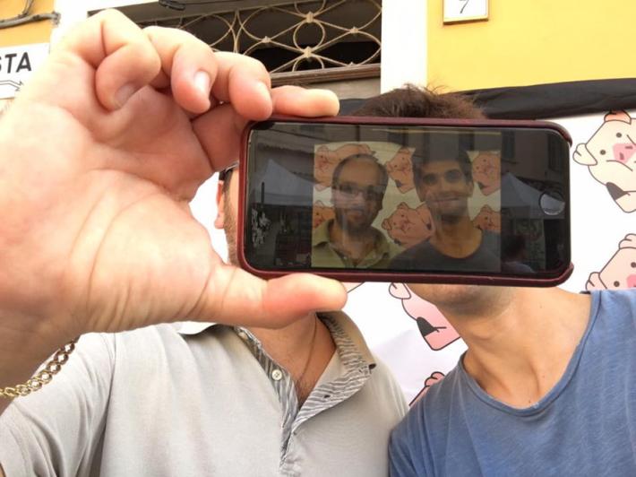 A Langhirano, durante il Festival del prosciutto di Parma, centinaia di persone hanno partecipato al concorso "la selfieria", organizzato da Sonia Serra, con la collaborazione dei commercianti del paese. Si poteva vincere fino a 1000 euro in buoni acquisto messi a disposizione dai negozianti con un "selfie" scattato all'aperto, sullo sfondo di una parete di maialini in posa. La foto vincitrice è stata quella di Gianpaolo Vecchi: un'ironica promessa di fidanzamento con un prosciutto al posto dell'anello di diamanti. Ma ci sono anche altre foto originali, divertenti, bizzarre e comiche. Eccole.