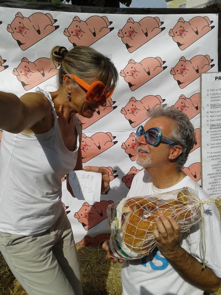 A Langhirano, durante il Festival del prosciutto di Parma, centinaia di persone hanno partecipato al concorso "la selfieria", organizzato da Sonia Serra, con la collaborazione dei commercianti del paese. Si poteva vincere fino a 1000 euro in buoni acquisto messi a disposizione dai negozianti con un "selfie" scattato all'aperto, sullo sfondo di una parete di maialini in posa. La foto vincitrice è stata quella di Gianpaolo Vecchi: un'ironica promessa di fidanzamento con un prosciutto al posto dell'anello di diamanti. Ma ci sono anche altre foto originali, divertenti, bizzarre e comiche. Eccole.