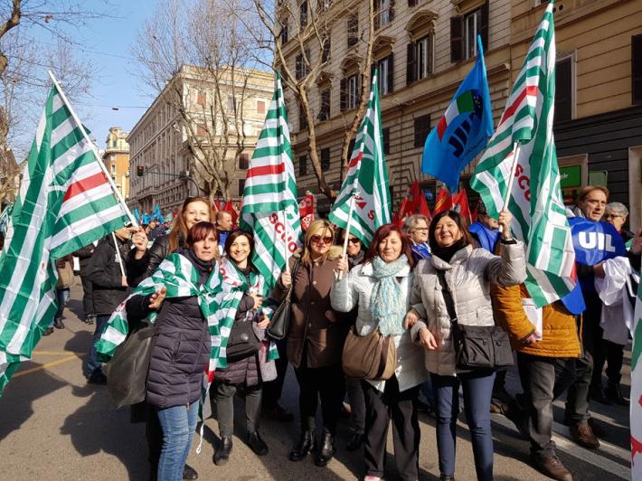Al via a Roma la manifestazione nazionale di Cgil, Cisl e Uil, con lo slogan 'Futuro al lavorò, per sostenere le proposte unitarie su crescita, sviluppo, lavoro, pensioni e fisco e chiedere al governo di aprire un confronto. «Il governo esca dalla realtà virtuale e si cali nel mondo reale, del lavoro», è l'invito della segretaria generale della Cisl, Annamaria Furlan. Per il segretario della Cgil Maurizio Landini «è meglio che il governo torni indietro perché altrimenti va a sbattere. E aggiunge: «noi siamo il cambiamento». Il segretario generale della Uil Barbagallo chiede al governo «ci convochi o la mobilitazione proseguirà». In piazza anche gli industriali al fianco dei sindacati perchè, sottolineano, «siamo tutti preoccupati allo stesso modo».