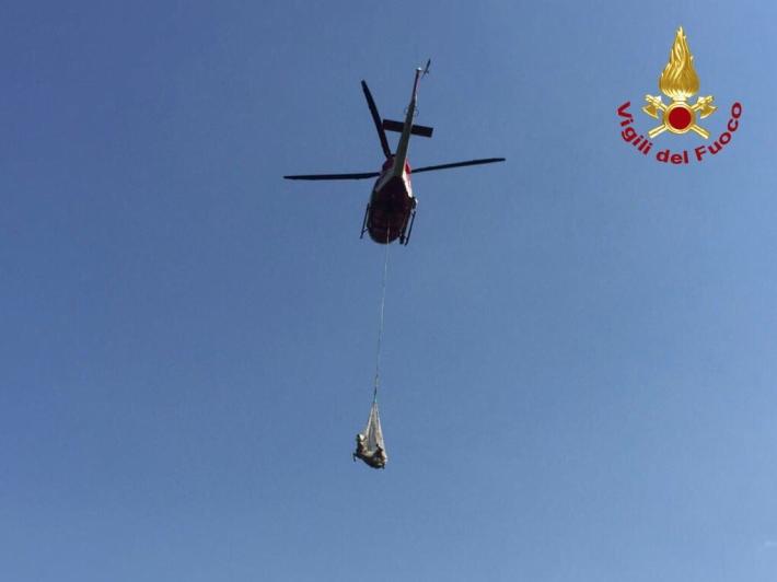 In seguito a una delle scosse di terremoto avvertite ieri in Italia centrale, una mucca è fuggita da una stalla ad Acquasanta Terme, in provincia di Ascoli Piceno. "La recupera in un dirupo #DragoVF 51. Sta bene!", scrivono i vigili del fuoco, che hanno pubblicato le foto sul loro profilo Twitter.