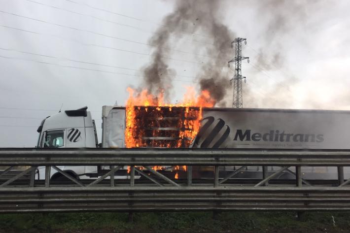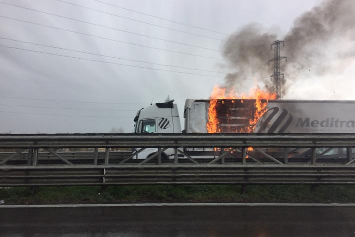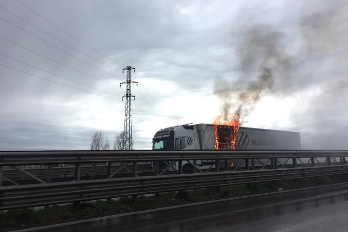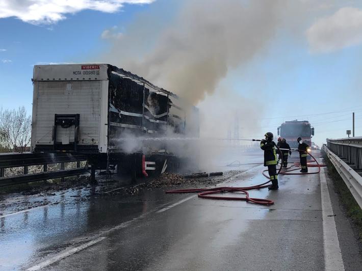 Un tir con il cassone in fiamme in tangenziale Nord tra le uscite di via Venezia e via Mantova, in direzione Reggio Emilia. L'autista ha subito fermato il mezzo e ha staccato la motrice dal rimorchio, che trasportava carta. Sono intervenuti i vigili del fuoco.