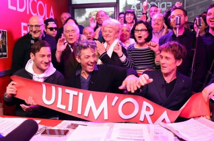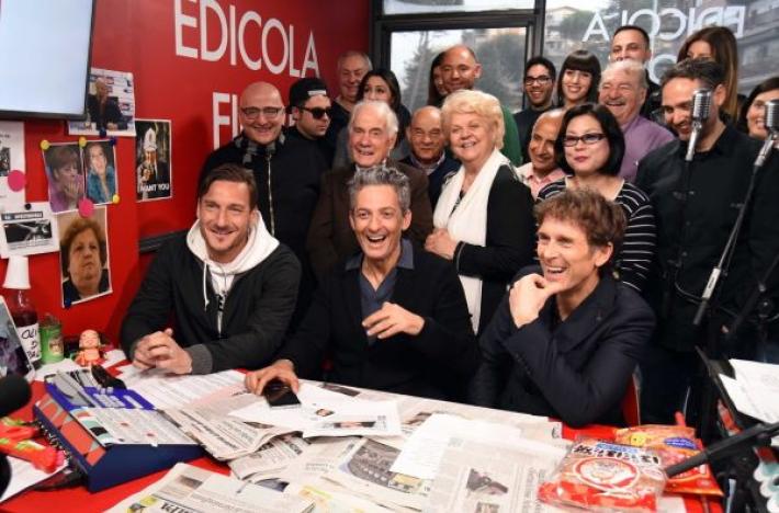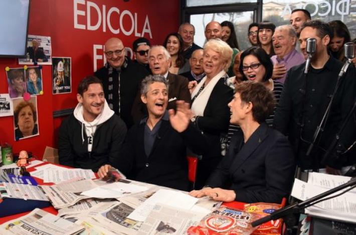Al mattino le battute al fianco di Fiorello, nel pomeriggio un gol dei suoi, a dimostrazione che la panchina non lo ha arrugginito. Francesco Totti sembra vivere con assoluta leggerezza la fase finale della carriera da calciatore. Il capitano della Roma, anche se non ha svelato quale sarà il suo futuro alla scadenza del contratto, si divide sempre di più tra allenamenti e comparsate televisive. Dopo le apparizioni a Sanremo, nella casa del Grande Fratello, e nella trasmissione di Costanzo, oggi ha varcato la soglia del bar dell’Edicola Fiore dimostrando ancora una volta di sentirsi sempre più a suo agio davanti alle telecamere.