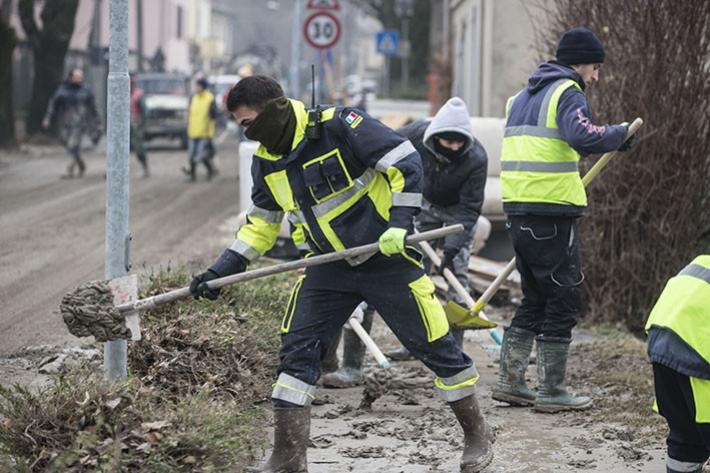Tra ruspe e "angeli del fango": a Lentigione si lavora senza sosta