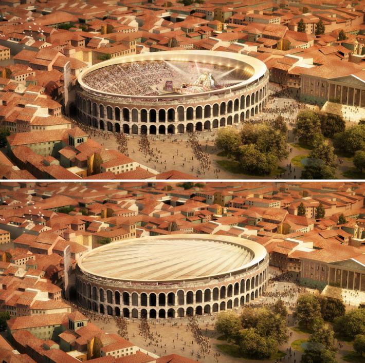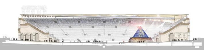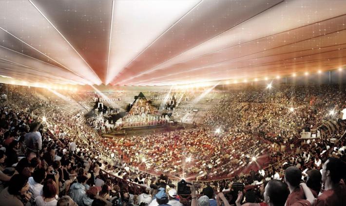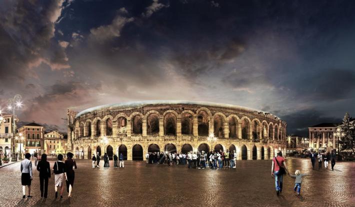 La strada, va detto, è ancora lunga e incerta, però il primo passo è già stato fatto: un concorso internazionale di idee (che ha avuto l’ok del ministero dei Beni culturali quando era retto da Massimo Bray) per la copertura finanziato da Calzedonia e di cui oggi è stato proclamato il vincitore. D’altronde - ha osservato il fondatore del gruppo Sandro Veronesi - se i francesi hanno messo una piramide in vetro davanti al Louvre, a Verona si potrà creare una protezione per l’anfiteatro romano dove ogni anno migliaia di persone assistono a opere e concerti.