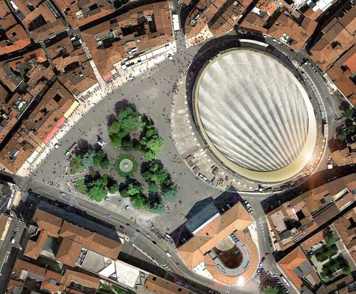 Il bando chiedeva di ideare una copertura che si potesse togliere e che non incidesse sul monumento e sulla piazza su cui ci sono degli importanti vincoli architettonici e paesaggistici. Inoltre fra i firmatari del progetto ci doveva essere almeno un partecipante giovane, iscritto all’albo professionale da meno di cinque anni. In tutto sono arrivate 87 proposte (3 giudicate non ricevibili). Di queste il 28% dall’estero, non solo Europa ma anche Giappone, Stati Uniti ed Argentina.
