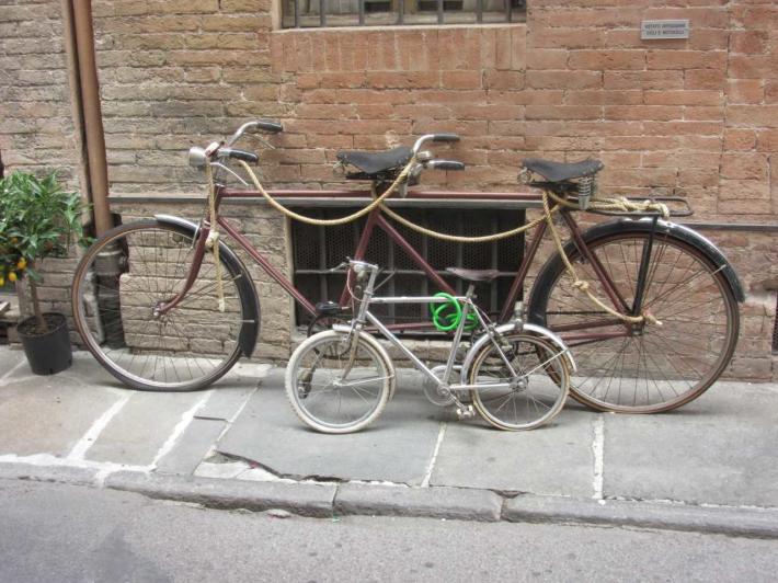 C’è lo «zampino» di Andrea Bindani, grande appassionato di oggetti del passato, in questo breve tratto di strada del Conservatorio che costeggia i muri austeri dell’Università. Oltre alla sua Fiat 600 c’è una vecchia - anzi, vecchissima - bicicletta tandem, ancora con la corda con la quale era appesa in un casolare, prima di essere venduta. E, vicino, una bicicletta da bambino, vecchiotta anche lei. E poi c’è un mezzobusto d’epoca di Giuseppe Garibaldi, in marmo, da giardino. Senza tralasciare – e questo non è antiquariato ma piacere per le cose belle - l’infinità di vasi multicolori con tanti fiori colorati nei quattro piani sopra la trattoria.