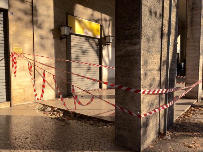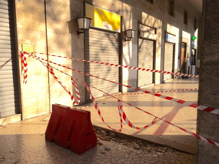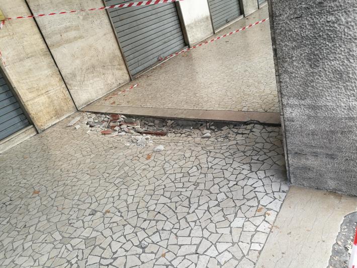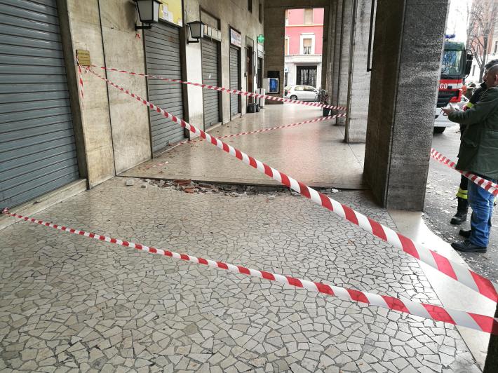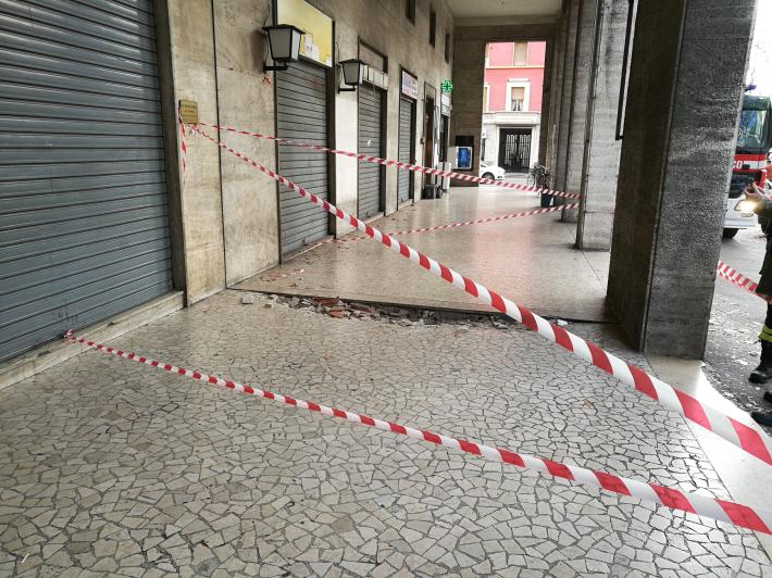 Intervento dei vigili del fuoco, questa mattina, vicino alla stazione. In viale Bottego, sotto i portici del palazzo che fa angolo con via Trento, ha ceduto la pavimentazione. I vigili del fuoco hanno effettuato controlli fra le 9 e le 10.