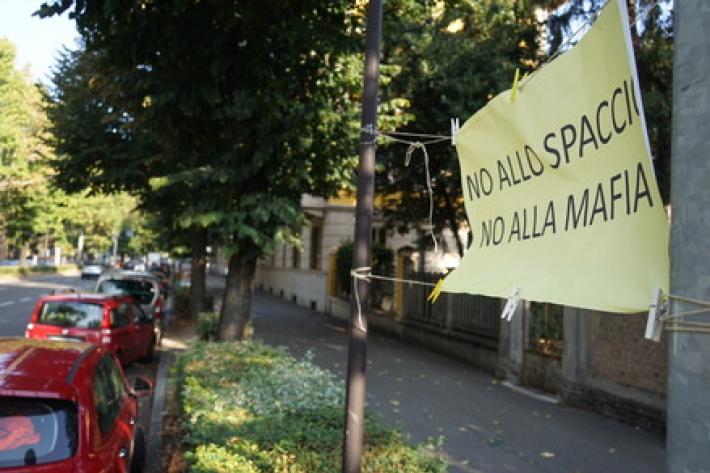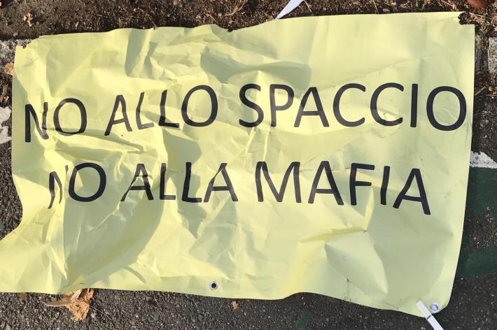 In viale Vittoria è spuntato un nuovo cartello contro la droga... ma a quanto pare ha avuto vita breve. Qualcuno lo ha strappato: questa mattina è stato trovato nella campana del vetro, davanti alla quale era stato appeso.
