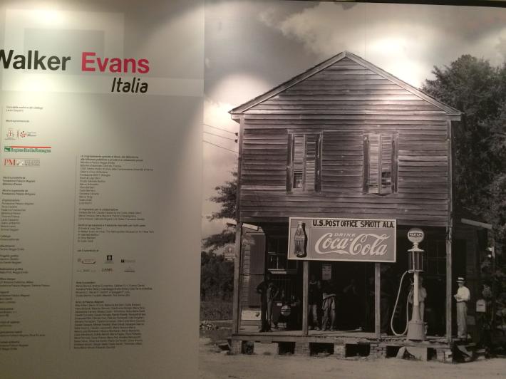 Walker Evans vive fra il 1903 e il 1975. Scatta foto e scrive articoli per riviste americane a grande diffusione, come “Fortune”, documentando i problemi sociali degli Stati Uniti e non solo. Lo stile di Evans influenza i fotografi emiliani negli anni ’70-’80, da Luigi Ghirri a Gabriele Basilico. Inoltre, come recita la spiegazione all’ingresso, in questo fermento ha un ruolo importante anche la critica, “in particolare Arturo Carlo Quintavalle dell’Università di Parma che strinse un rapporto di collaborazione con John Szarkowski, direttore del Dipartimento di Fotografia del Moma, avviando una felice stagione di rinnovamento culturale”.