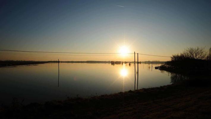 Tramonto a Lentigione, nei giorni dell'alluvione: foto di Luca Baga.