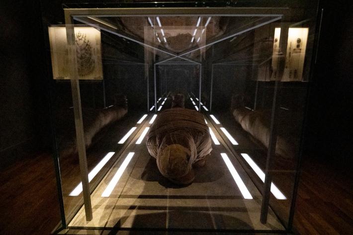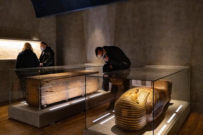 Le collezioni, la nascita di quella egizia nell’Ottocento, la storia del nostro museo e dei suoi direttori, è stato oggetto dell’intervento di Angela Mutti, archeologa che con Flavia Giberti, ha curato l’allestimento dell’Ala Nuova, mentre Emanuela Rossi, architetto della Soprintendenza (SABAP) che ha seguito i lavori, si è soffermata sulla complessità degli interventi, in particolare su quel maestoso soffitto a cassettoni della sala ceramiche, occultato alla vista negli anni Cinquanta da un enorme piano in calcestruzzo, di complessa demolizione.