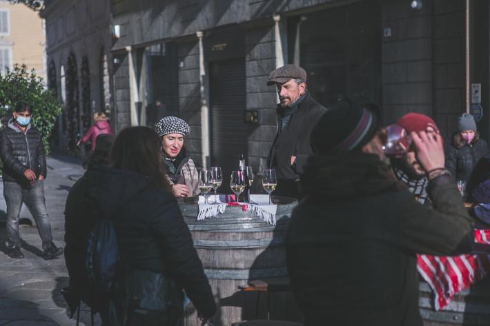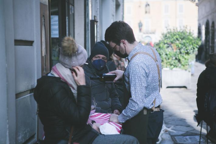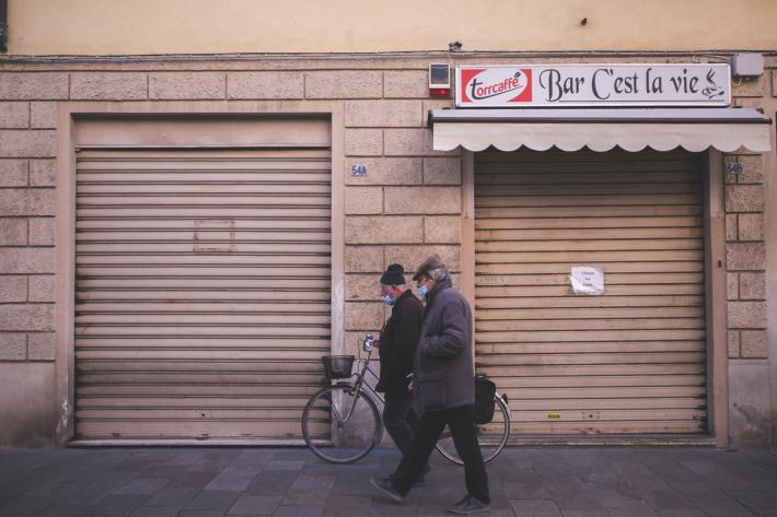 Quello che raccontano le foto che vi mostriamo sono le serrande abbassate di diversi bar, gli sparuti brindisi ai tavolini all'aperto, anche un notevole accorciamento della classica coda davanti alle gastronomie.