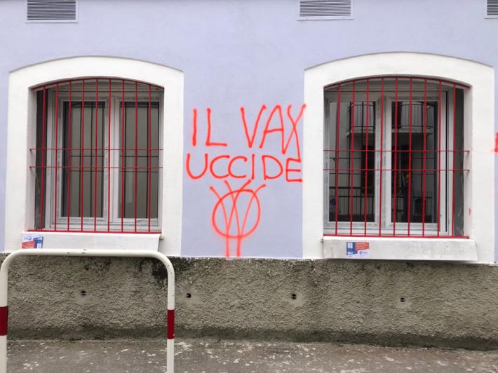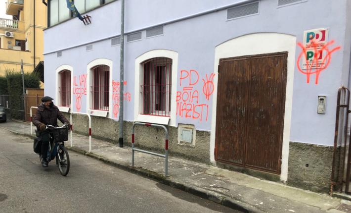 Sono comparse nella notte: grandi scritte No Vax in rosso sui muri della sede Pd di via Treves. In cui il partito viene anche definito nazista.