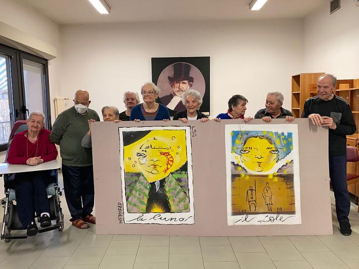 Gli ospiti delle RSA “S. Mauro Abate” di Colorno, “G. Sidoli” di Parma, “Fondazione Casa di Padre Lino” di Parma, “I Tigli”, “I Lecci”, “Le Tamerici” di Villa Parma, “S. Ilario”, “S. Clotilde”, “S. Bernardo” di Porporano, in presenza del Consigliere Comunale di Parma Leonardo Spadi, “Casa Alberi” di Vigatto, “Villa Ester” di Parma, “Gulli/Romanini” di Parma, “S. Leonardo” di Parma; e quelle di Monticelli Terme, Montechiarugolo, alla presenza del Sindaco di Montechiarugolo Daniele Friggeri, Presidente dell’Unione Pedemontana Parmense, hanno condiviso con grande emozione la consegna delle tele e festeggiato l’iniziativa che da oggi porterà nuovi colori e gioia alle loro dimore.