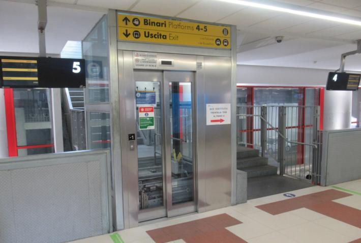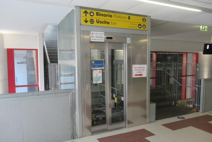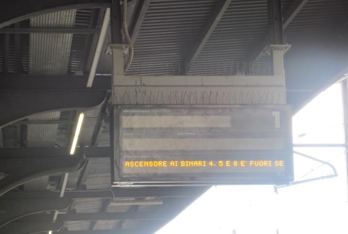 Alla stazione ferroviaria continuano a non funzionare al cento per cento gli ascensori e le scale mobili. Oggi pomeriggio era ancora bloccato l’ascensore che porta dal sottopassaggio principale ai binari 4 e 5 (fuori uso da diverso tempo) mentre funziona quello che porta ai binari 2 e 3 (guasto fino a pochi giorni fa). In compenso ora è fuori uso l’ascensore che porta al binario 8. E c’è anche, come capita spesso, una scala mobile bloccata: oggi «tocca» a quella di salita dal piano -2 al piano -1.