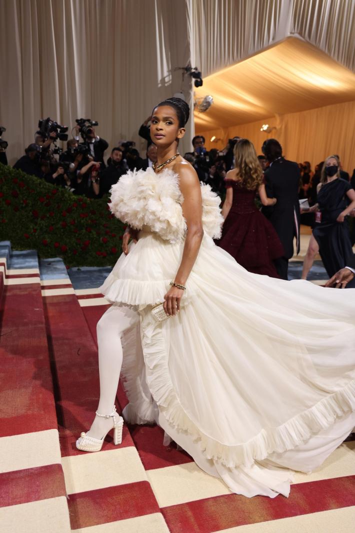 «Upstairs» e «Downstairs» tornano sulla scalinata del Met per il Gala 2022, la festa dell’anno che inaugura la mostra stagionale del Costume Institute dedicata quest’anno alla nascita dello «stile americano». Il tema del party di «In America - An Anthology of Fashion» era «Gilded Glamour e Cravatta Bianca», l’indicazione di rigore delle feste più solenni, dai party del Nobel ai ricevimenti di Buckingham Palace. Un anacronismo, declinato in mille modi dagli stilisti e le celebrità invitate a sfilare e festeggiare la mostra dedicata a 200 anni di creatività a stelle e strisce.