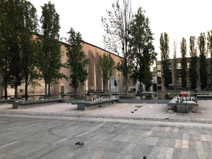 E' una storia che si ripete periodicamente: il risveglio di piazza della Pace tappezzato da un numero impressionante di bottiglie di alcolici abbandonate e di algtri rifiuti sparsi. Qualche tempo fa era stato Lorenzo Lavagetto (Pd) a mostrare le immagini. Stavolta tocca a Priamo Bocchi, candidato sindaco per Fratelli d'Italia. Un brutto buongiorno "bipartisan".