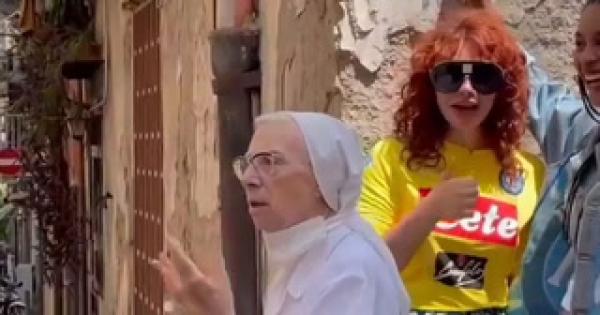 - «Ma che fate, che fate? E’ il diavolo, questo è il diavolo». Una reazione, la sua, finita dritta in un video, visto che in quel momento si stava girando uno spot, che ora sta diventando virale. La singolare scena si è verificata nel centro storico dove si stava realizzando uno servizio fotografico con due attrici. Serena de Ferrari e Kyshan Wilson, protagoniste della serie tv "Mare fuori", che racconta le storie di giovani in un carcere minorile, si stavano baciando quando è arrivata la suora esterrefatta. Le ha divise chiedendo loro 'che fate?' e poi mentre si è allontanata si è anche fatta il segno della croce ripetendo "è il diavolo".