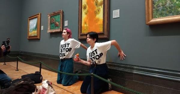 Le immagini del blitz alla National Gallery mostrano due giovanissime militanti in azione: entrate entrambe nel museo con indosso t-shirt bianche con la scritta 'Just Stop Oil' (Fermiamo il petrolio ora) per lanciare poi il contenuto di due lattine di zuppa di pomodoro o di legumi - apparentemente - contro il quadro di Van Gogh. E incollarsi quindi al muro con una mano ciascuna, sotto l’opera imbrattata, in modo da farsi riprendere sorridenti, con le confezioni di ministra aperte rette nell’altra mano.