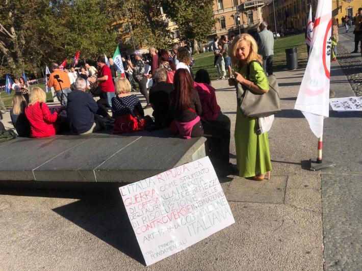“Uniti per la pace” è lo slogan con cui si sono ritrovati in piazza della Pace alcuni movimenti tra cui Italexit e i movimenti Ancora Italia e 3 V. Tra gli slogan lanciati il no alle sanzioni, alla Nato e alla guerra. Spiega Sandra Marchignoli di Italexit: “le sanzioni creano disastri economici per il nostro Paese. Basta essere una colonia americana senza possibilità di scelta”.