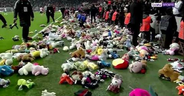 Dagli spalti sono piovuti in campo migliaia di peluche e giocattoli. E' accaduto in Turchia, durante la gara della Super Lig tra Besiktas e Antalyaspor.
