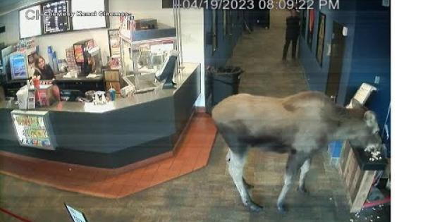 Un nuovo spettatore... a Kenal in Alaska un alce è entrato nella hall e si è messo a mangiare del popcorn.
