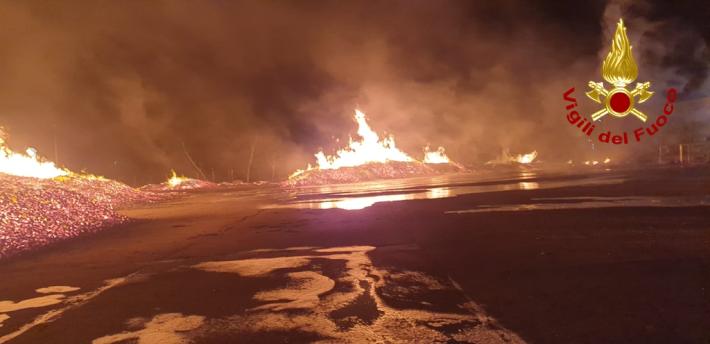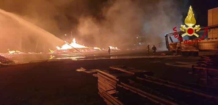 Ieri alle 23.30, circa, 9 squadre del Comando dei vigili del fuoco di Parma e 2 del Comando di Piacenza sono intervenute in una ditta nel comune di Fontevivo, tra la via Emilia e la ferrovia, per un incendio di bancali in legno accatastati nel piazzale.