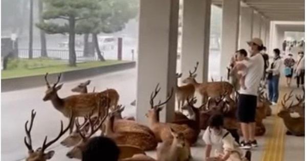 La bella immagine dei cervi che si riparano dalla pioggia a Nara, in Giappone: un quadro poetico e quasi surreale. Guarda il Video