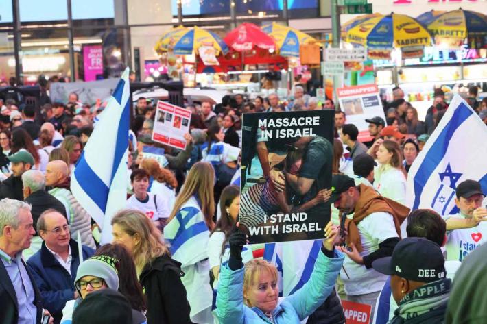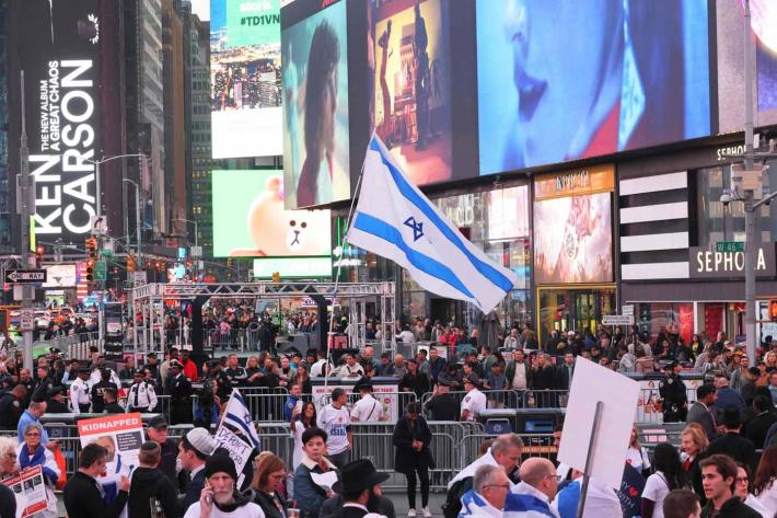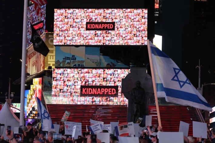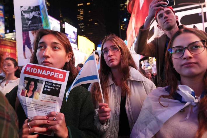 Migliaia di persone della comunità ebraica di New York hanno manifestato in serata a Times Square per chiedere la liberazione degli ostaggi nelle mani di Hamas. Sugli schermi luminosi della popolare piazza si sono alternate le foto degli ostaggi, fra la rabbia di alcuni dei manifestanti che hanno accusato i media di non occuparsi in prima pagina di coloro che sono prigionieri.