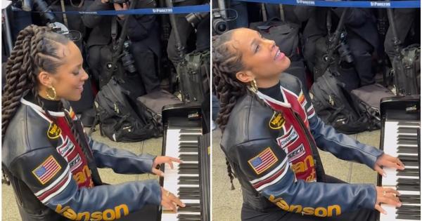 Dopo Rod Stewart è stata la volta di Alicia Keys, che si è seduta al pianoforte donato alla stazione da Elton John alla stazione ferroviaria londinese di St Pancras.