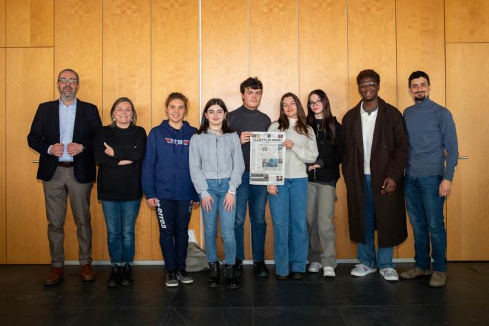 Alla delegazione del Marconi è stato donato il catalogo della grande mostra organizzata in occasione di Parma capitale italiana della cultura per raccontare i quasi tre secoli di storia del nostro giornale. E ora toccherà agli studenti-giornalisti del «Guglielmo» raccontare l’esperienza ai loro lettori.