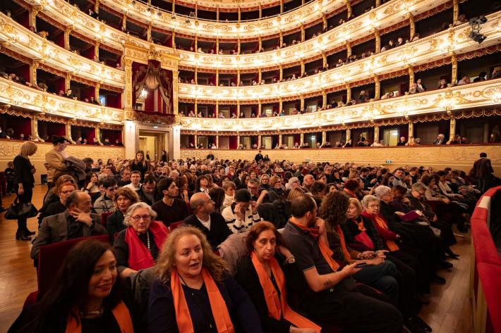Giovanni Allevi è tornato ad esibirsi live, al Teatro Regio, dopo due anni di assenza dalle scene a causa della malattia. Problemi di cui ha parlato di recente al Festival di Sanremo, dove è stato accolto dall'ovazione del pubblico. Dopodiché il primo concerto in programma è stato quello di Parma. Nella fotogallery, ecco chi c'era fra il pubblico e foto del maestro sul palco del Regio.