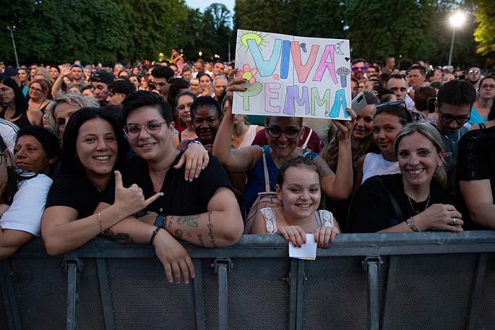 Emma incanta il pubblico parmigiano al Parco Ducale con la sua carica di energia e grinta: fan tutti in piedi per ballare. Guarda chi c'era al concerto.