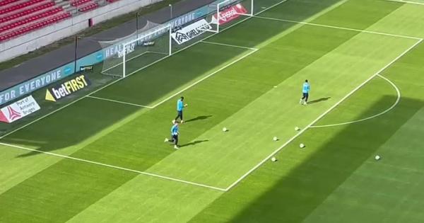 I nostri tre portieri si stanno scaldando sotto alla tifoseria crociata. Questa è la prima volta che vediamo in campo Suzuki, che proprio in Belgio ha mosso i suoi primi passi calcistici.