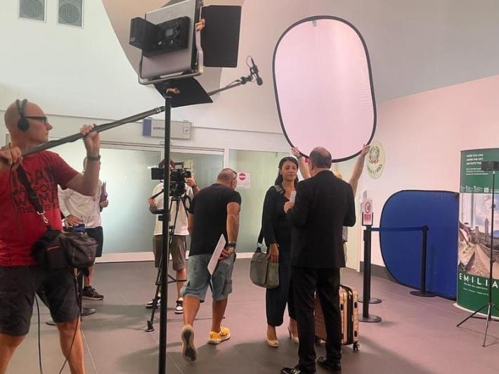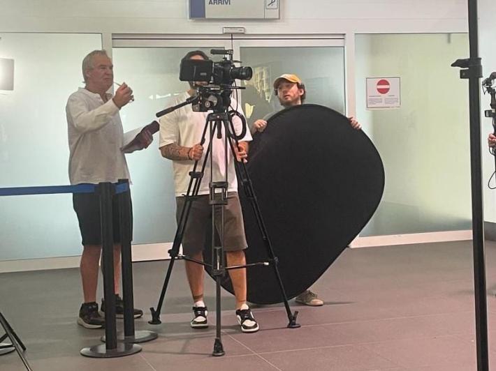 Le riprese si sono svolte in centro e all’Aeroporto Giuseppe Verdi, dove attori e set sono stati accolti con grandissimo entusiasmo dal personale dello scalo.