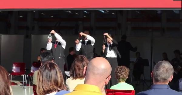 Verdi Off porta l'arte più eclettica in luoghi inusuali. Nel video gli artisti di Auriga Teatro divertono il pubblico nella sede di Opem, mentre la Funkasin Street Band apre la Verdi Street Parade in via Alfred Bernhard Nobel.
