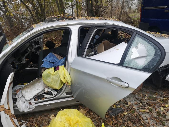 La macchina abbandonata , spostata, é soggetta a “sciacallaggio”: le portiere sono state private dei cavi elettrici e sono state lasciate aperte, i sedili sono stati messi sul marciapiede ed i vetri sono stati rotti.