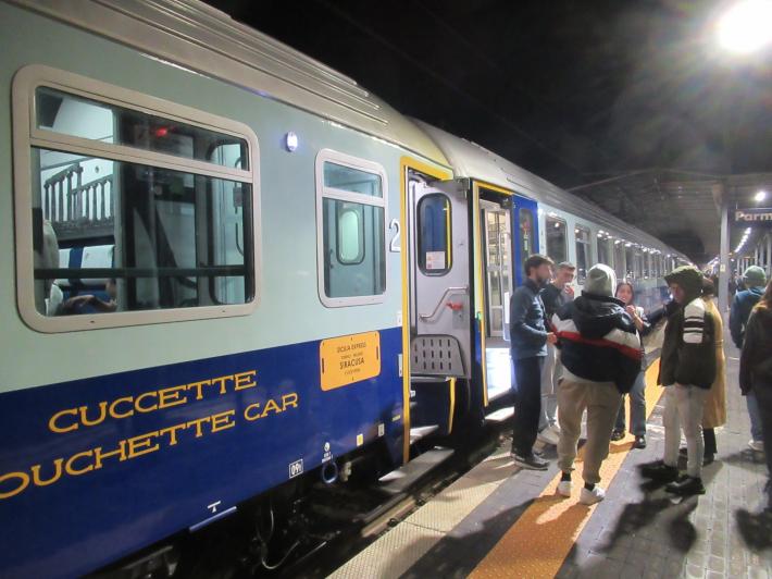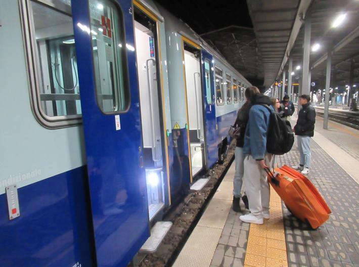 È arrivato con sette minuti di anticipo sul terzo binario. Ieri sera sul treno straordinario «Sicilia Express», partito poi regolarmente alle 19.12 dalla stazione di Parma, sono saliti una cinquantina di passeggeri che hanno avuto la fortuna di prenotare un posto nelle quasi due ore (del 2 dicembre scorso) in cui sono state aperte le prenotazioni e sono stati «bruciati» tutti i posti. Si trattava di un treno a prezzi convenienti, voluto dalla Regione Sicilia in collaborazione con Fondazione FS Italiane e Treni Turistici Italiani, per dare l’opportunità di raggiungere la Sicilia a prezzi più bassi rispetto ai ben più costosi biglietti aerei e anche dei treni ordinari. Prezzi dal minimo di 29 euro e 90 centesimi per il posto a sedere singolo al massimo di 129,90 per la cabina letto singola. Il ritorno del treno straordinario (oltre 500 posti, carrozze letti, cuccette, ristorante e posti a sedere) è previsto con partenza dalla Sicilia il 5 gennaio, con fermata a Parma alle 8.45 del giorno dopo.