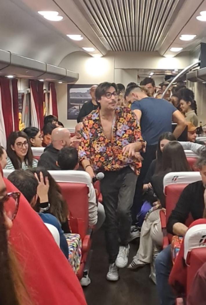 Sul treno è stata apprezzata l’esibizione del cabarettista palermitano Claudio Casisa e di altri comici siciliani.