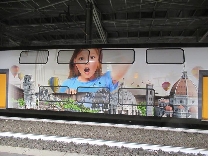 La variopinta coloritura esterna del convoglio, di cinque carrozze, nasce dalla collaborazione tra il Comune di Riccione, Trenitalia Tper, Federalberghi Riccione e Costa Edutainment. Sul treno sono ben visibili, di Riccione, il parco acquatico «Aquafan» e il parco tematico «Oltremare 2.0», e anche il parco «Italia in miniatura» di Viserbella di Rimini.