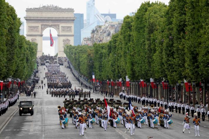 In totale, 7.000 donne e uomini hanno sfilato sui Campi Elisi, di cui 5,600 a piedi, 65 aereoplani (di cui 5 velivoli stranieri) , 34 elicotteri, 247 veicoli e 200 cavalli della Guardia Repubblicana. Invitata d’onore è l’Indonesia, con cui Parigi ha concluso un partenariato strategico per pesare maggiormente nella zona indo-pacifica.Tra i momenti più emblematici della parata, il passaggio della 'Patroulle de Francè -le Frecce Tricolore d’Oltralpe - con la loro scia bleu-blanc-rouge sopra ai tetti Parigi. Questa sera i tradizionali fuochi d’artificio alla Tour Eiffel. Ieri, il presidente francese, Emmanuel Macron, ha annunciato un ulteriore aumento delle spese militari di altri 3,5 miliardi di euro nel 2026, poi 3 miliardi nel 2027, in modo che il bilancio ne esca quasi raddoppiato in dieci anni, per oltre 60 miliardi di euro.