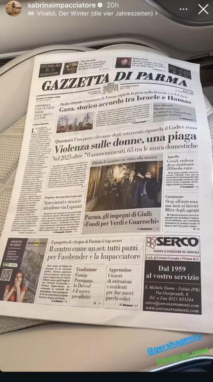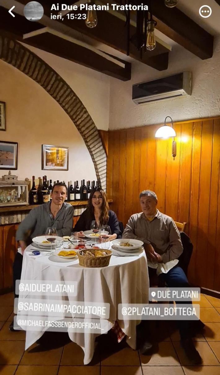Erano stati avvistati e fotografati da molti curiosi durante le riprese dello spot di Acqua di Parma in centro a Parma. Poi i due attori Sabrina Impacciatore e Michael Fassbender sono stati "pizzicati" al ristorante due Platani di Coloreto. Ci sono le foto e le storie di Impacciatore su Instagram a documentarlo e c'è anche la prima pagina della Gazzetta dove si parlava di loro.